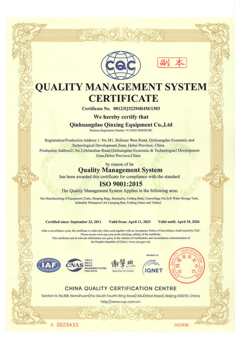 秦皇島秦興裝具有限公司有限公司源于我國第3524工廠,創建于2005年,占地面積30畝,是一家致力于研究,發展,制造和銷售為一體的綜合性裝具及紡織服裝加工生產企業,我們的主要產品有單、棉帳篷,民用帳篷,旅游帳篷集各種機工產品等。